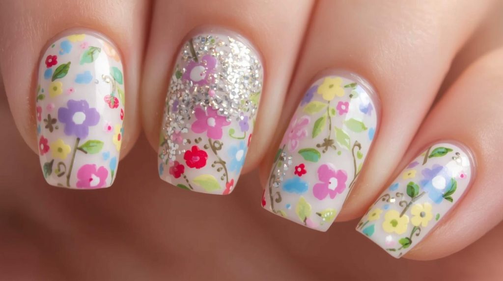 Even a simple nude base with a small floral design can feel elegant and seasonal.